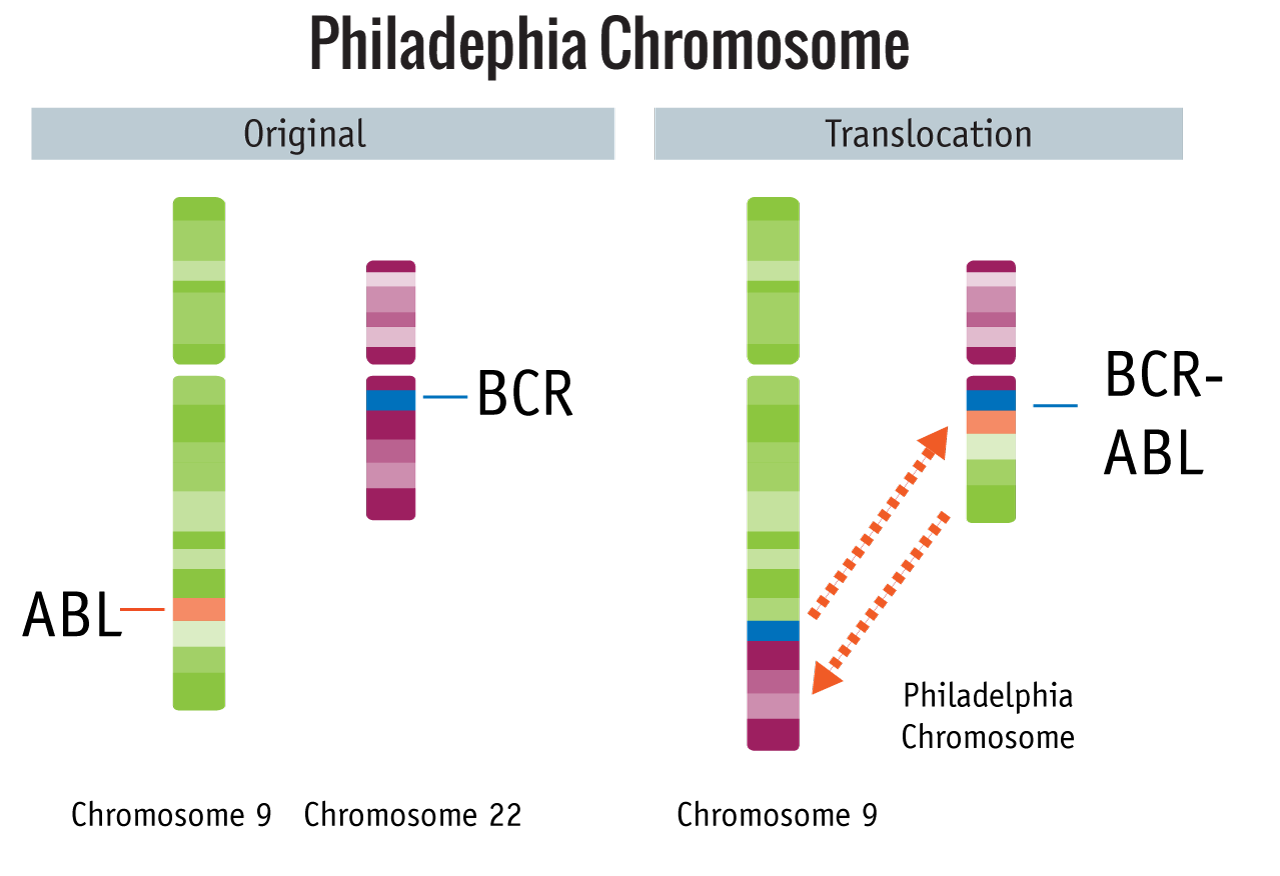 In 1960, solid evidence in favor of this theory was for the first time provided when the same small marker chromosome (the Philadelphia (Ph) chromosome, see figure) was found in bone marrow cells from three patients with chronic myeloid leukemia. In the decades that followed, numerous examples of first other leukemias, then lymphomas and solid tumors with specific acquired chromosomal abnormalities were detected. Indeed, most both benign and malignant neoplasias examined diligently were found to be characterized by more or less specific, but always non-random, chromosomal aberration patterns, whereas non-neoplastic cells never had similar chromosome changes.